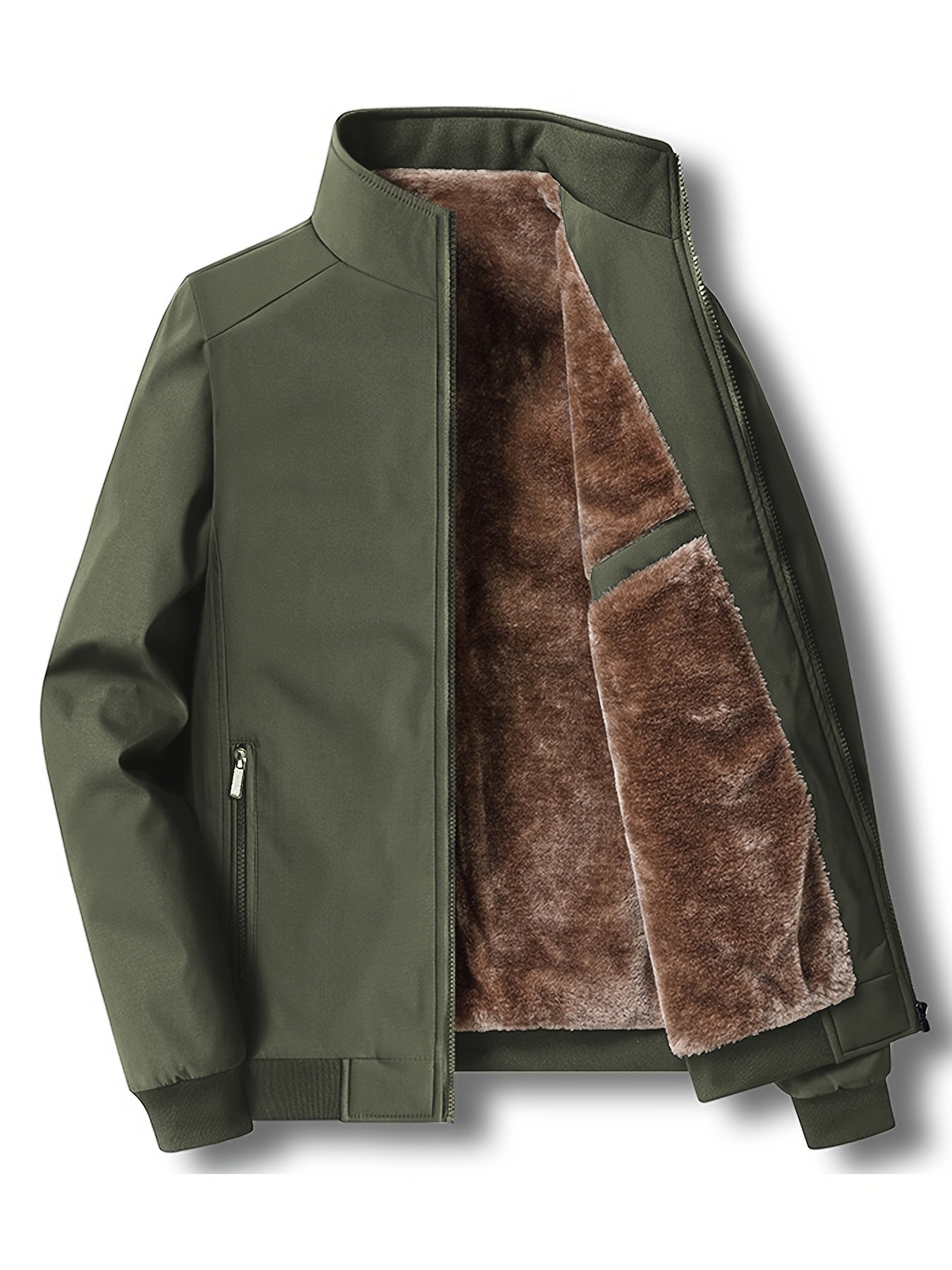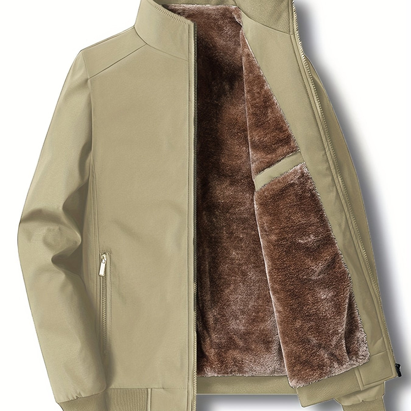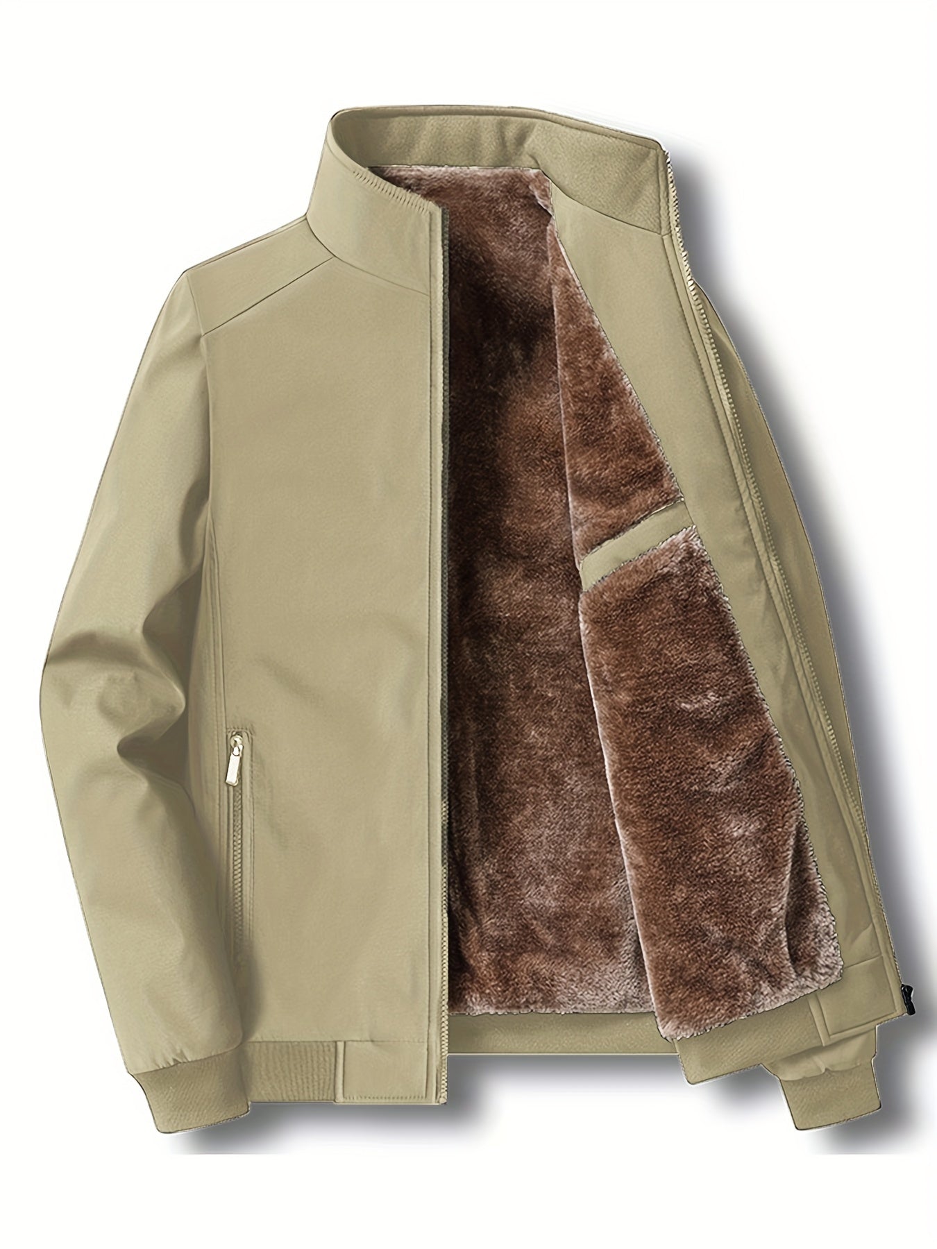 Men’s Fleece Lined Jacket – Stand Collar, Zippered Pockets, Ribbed Cuffs, Warm Casual Layer