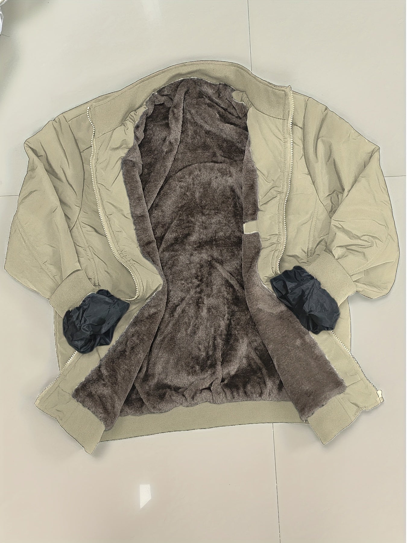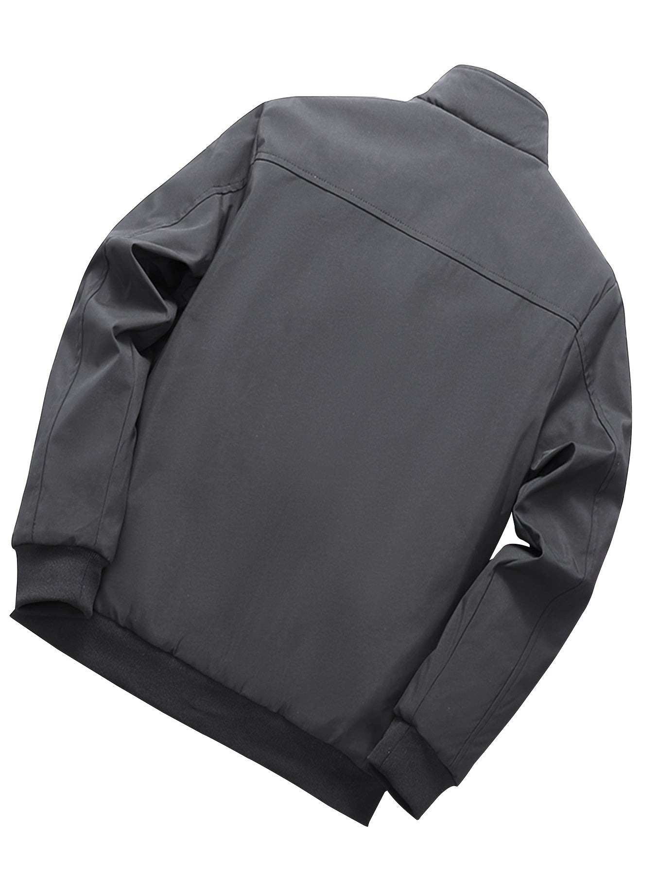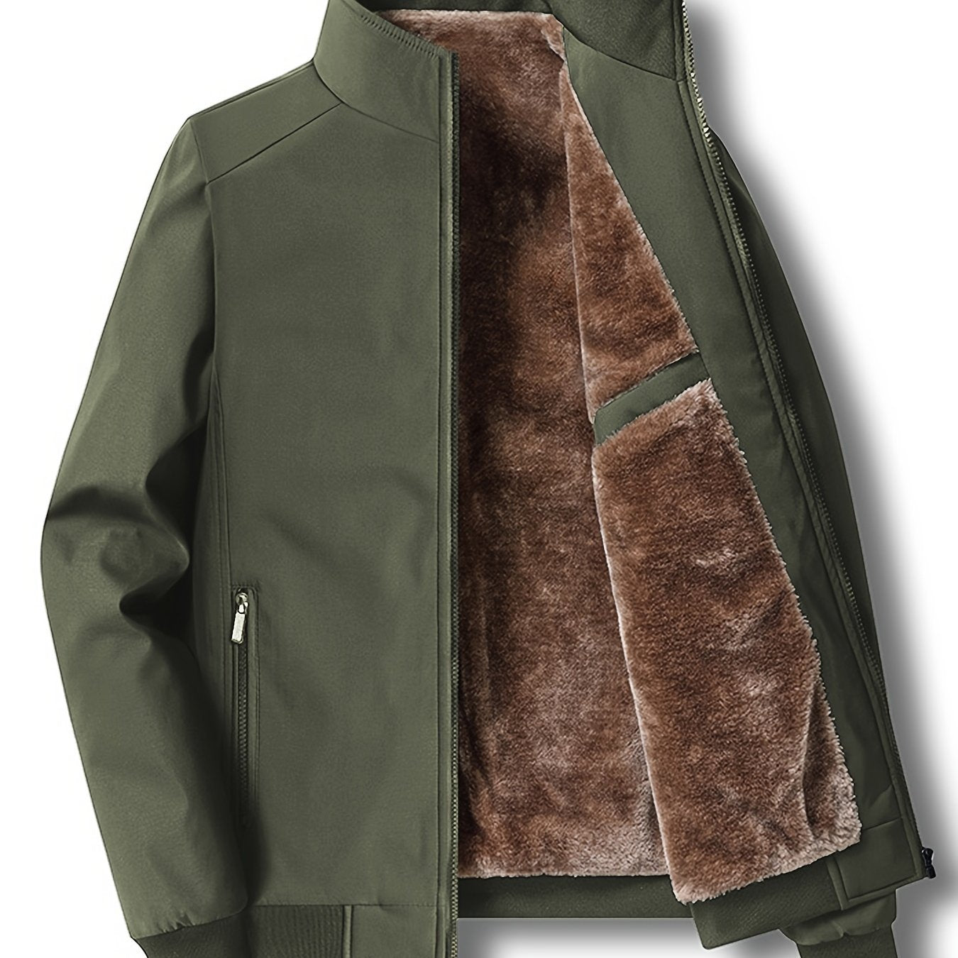Men’s Fleece Lined Jacket – Stand Collar, Zippered Pockets, Ribbed Cuffs, Warm Casual Layer