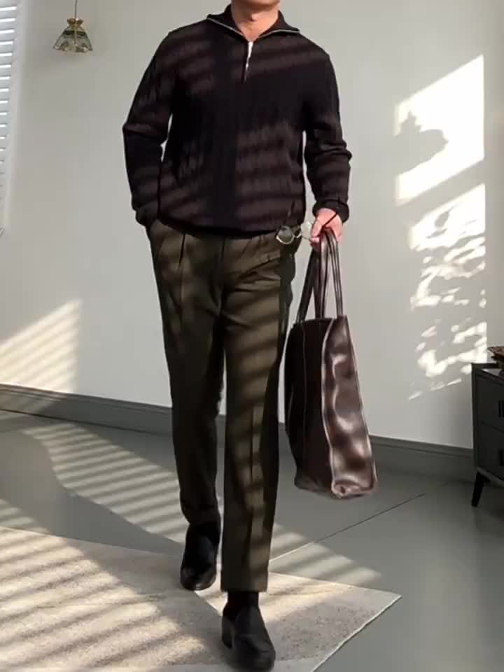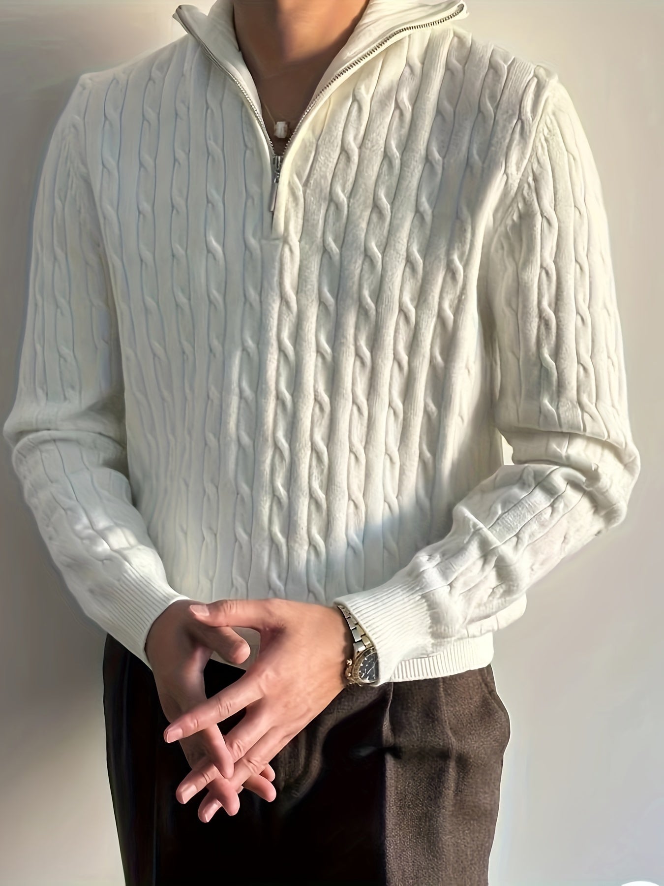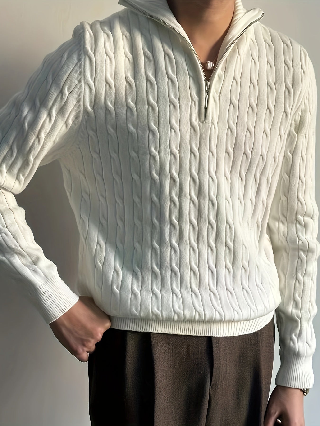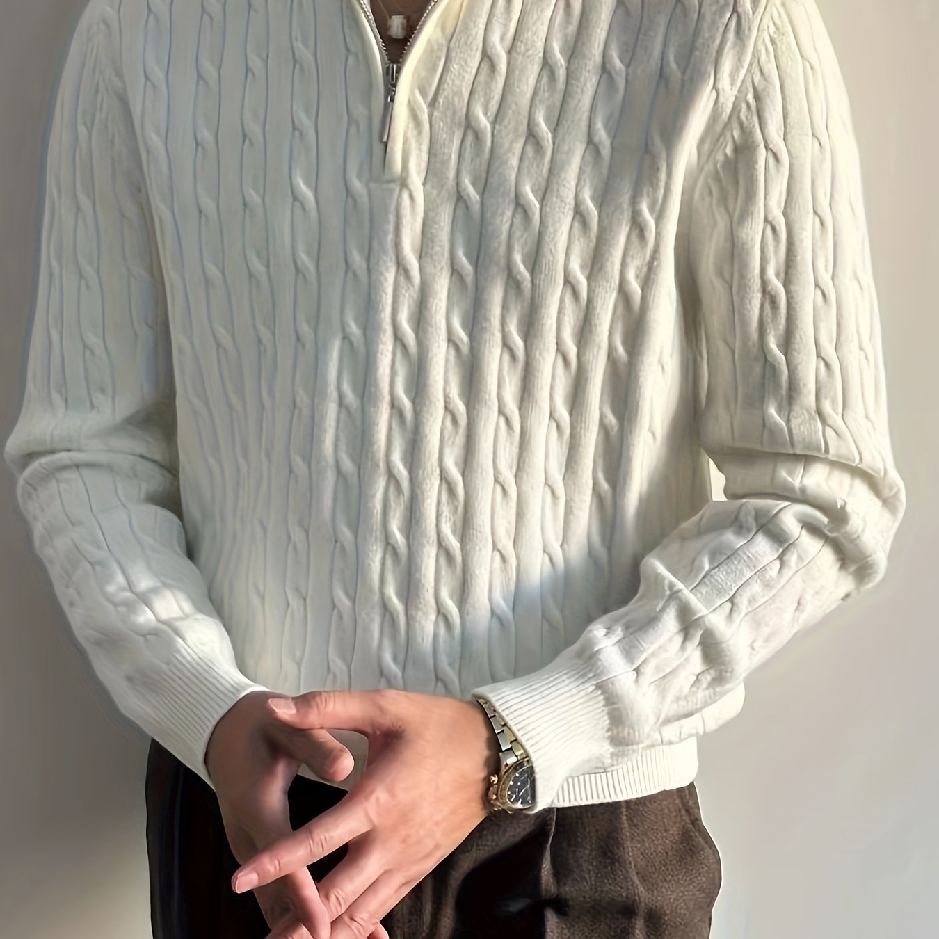 The Men’s Half-Zip Knit Sweater features a zippered neckline and integrated zip pockets. Designed with medium-stretch knit, it functions as an everyday layering option suitable for different outfits.