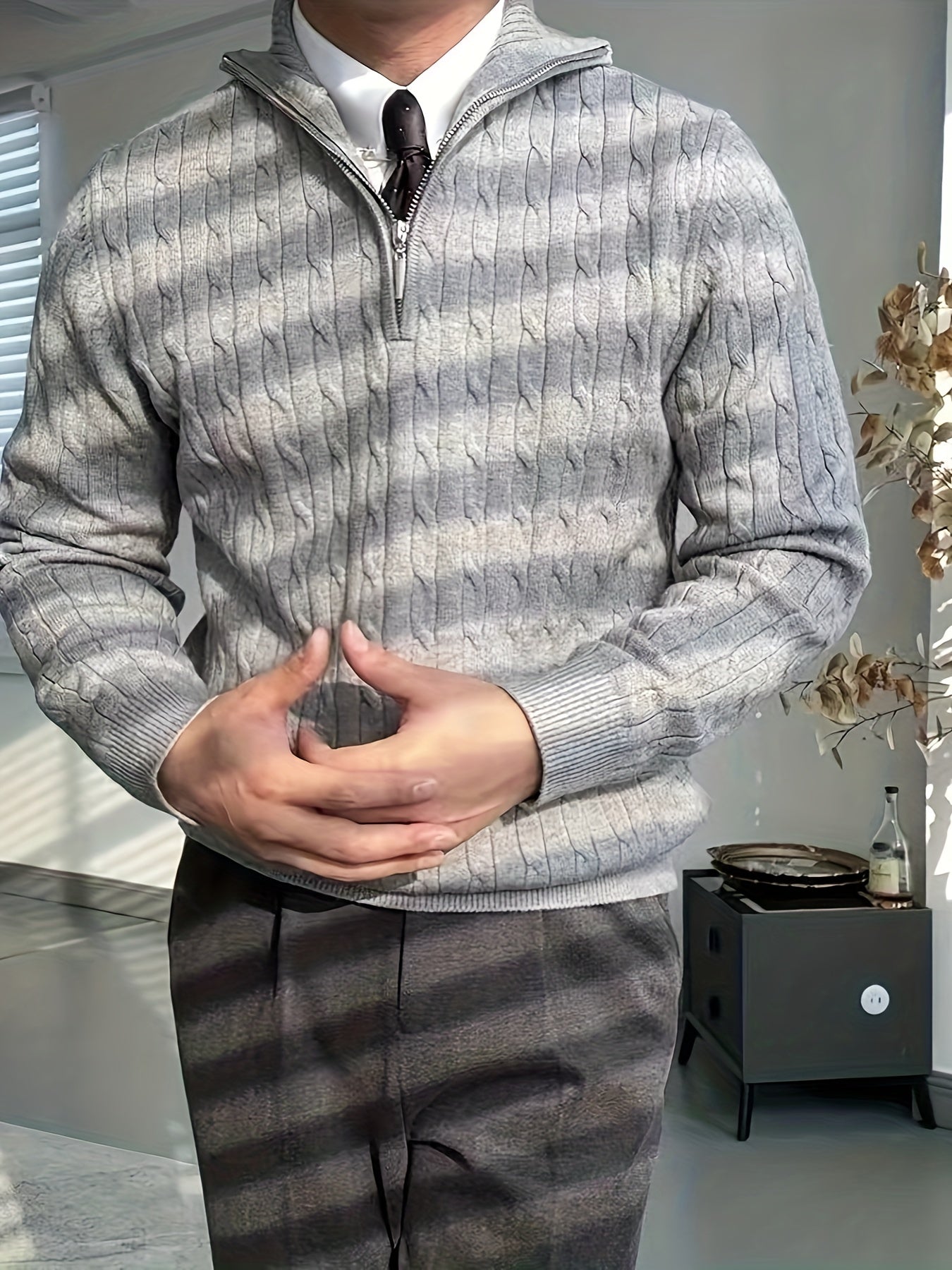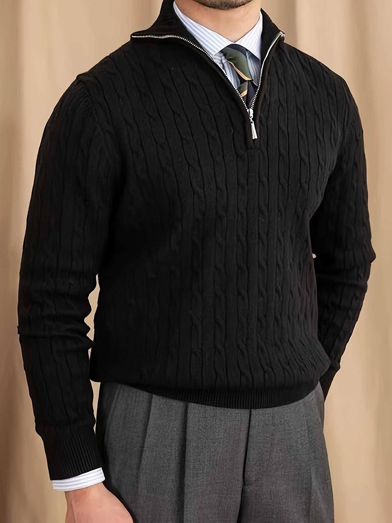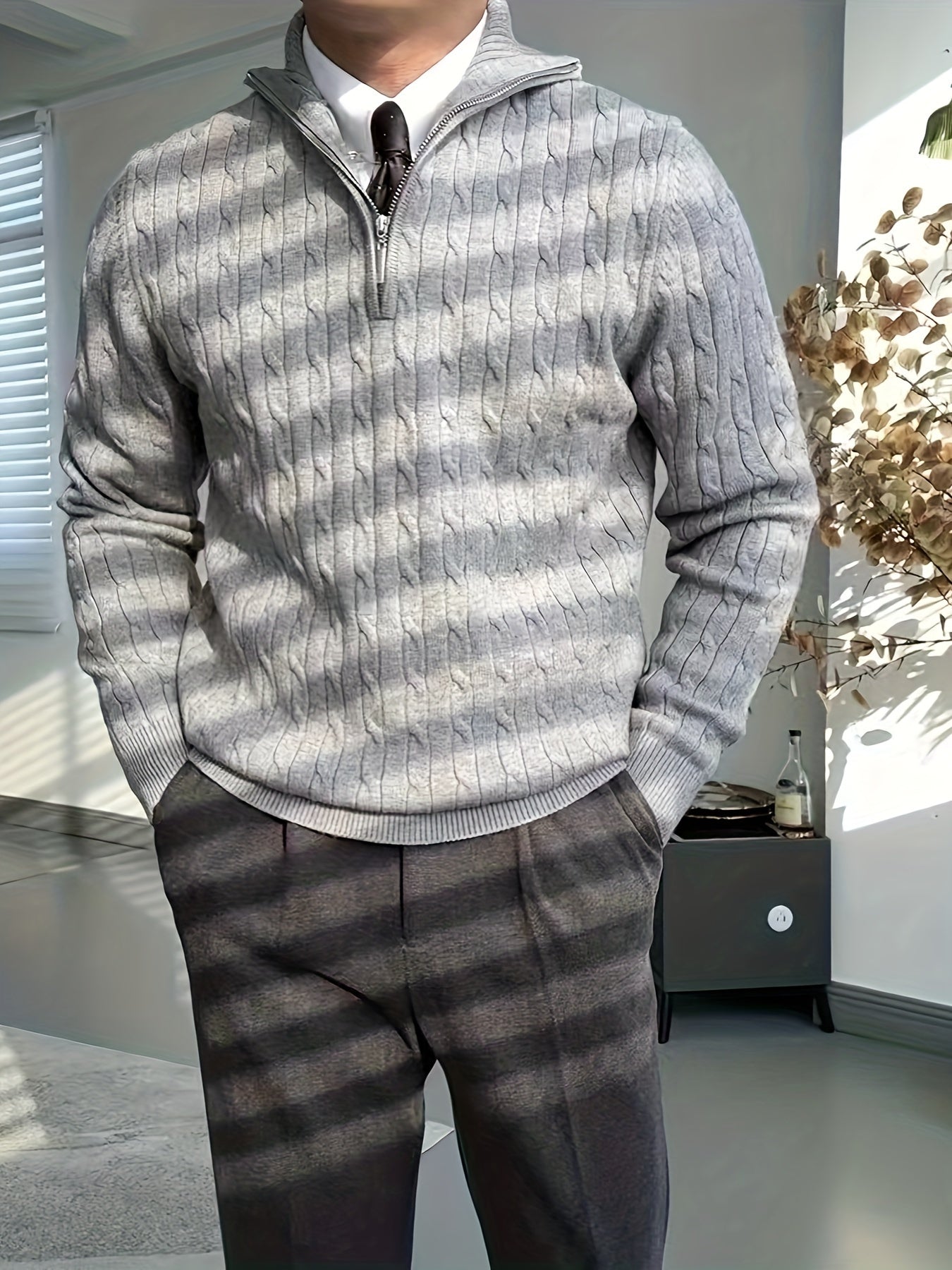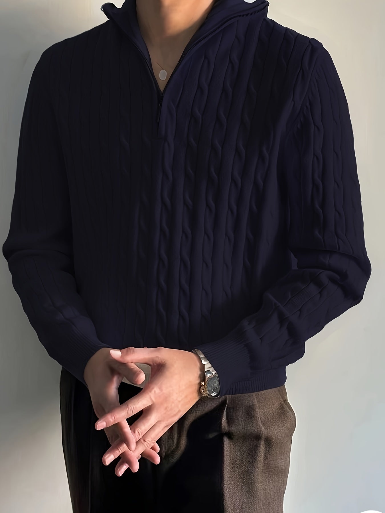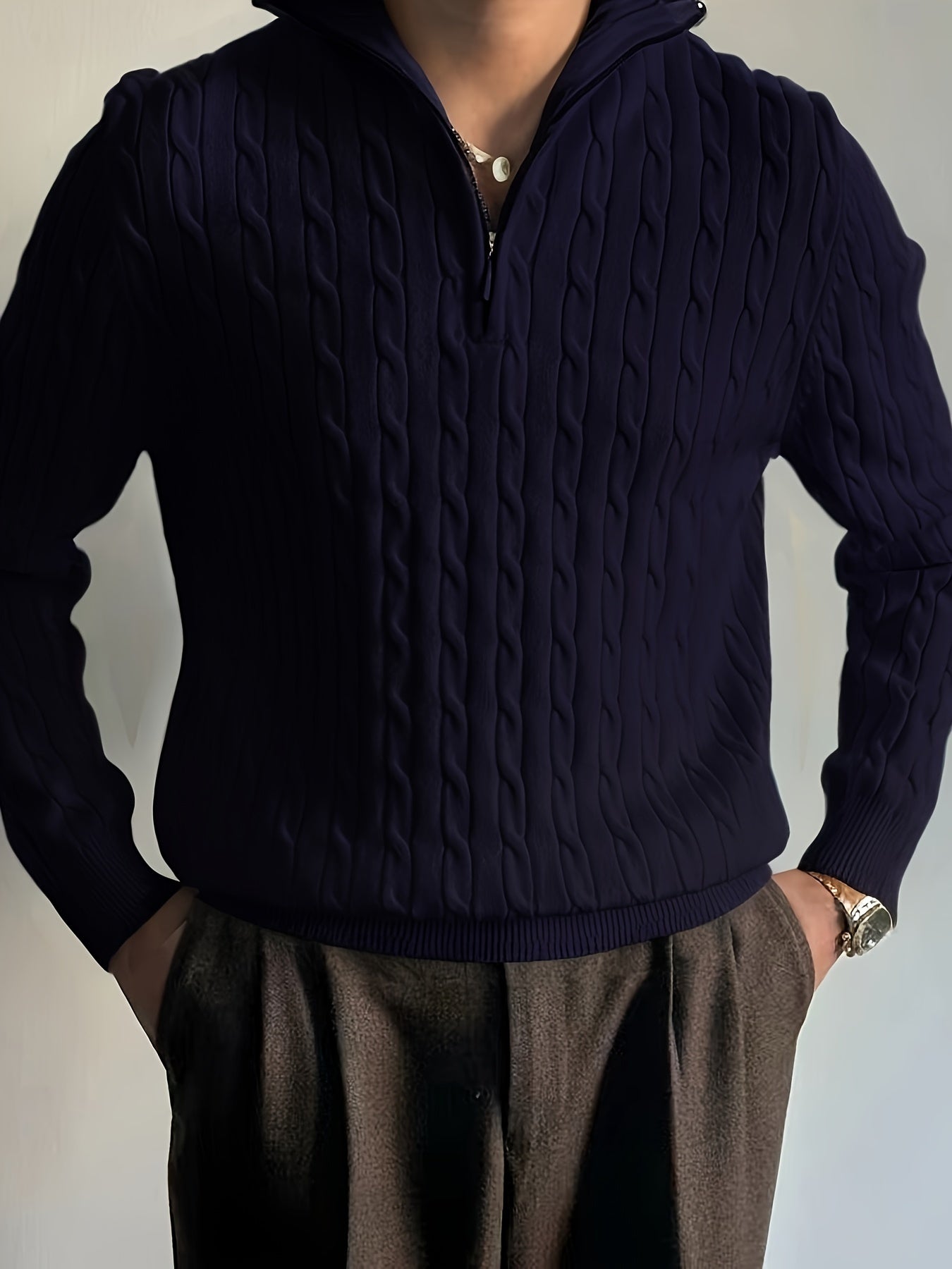 Men’s Half Zip Knit Jumper – Long Sleeve, Zippered Pockets, Regular Fit