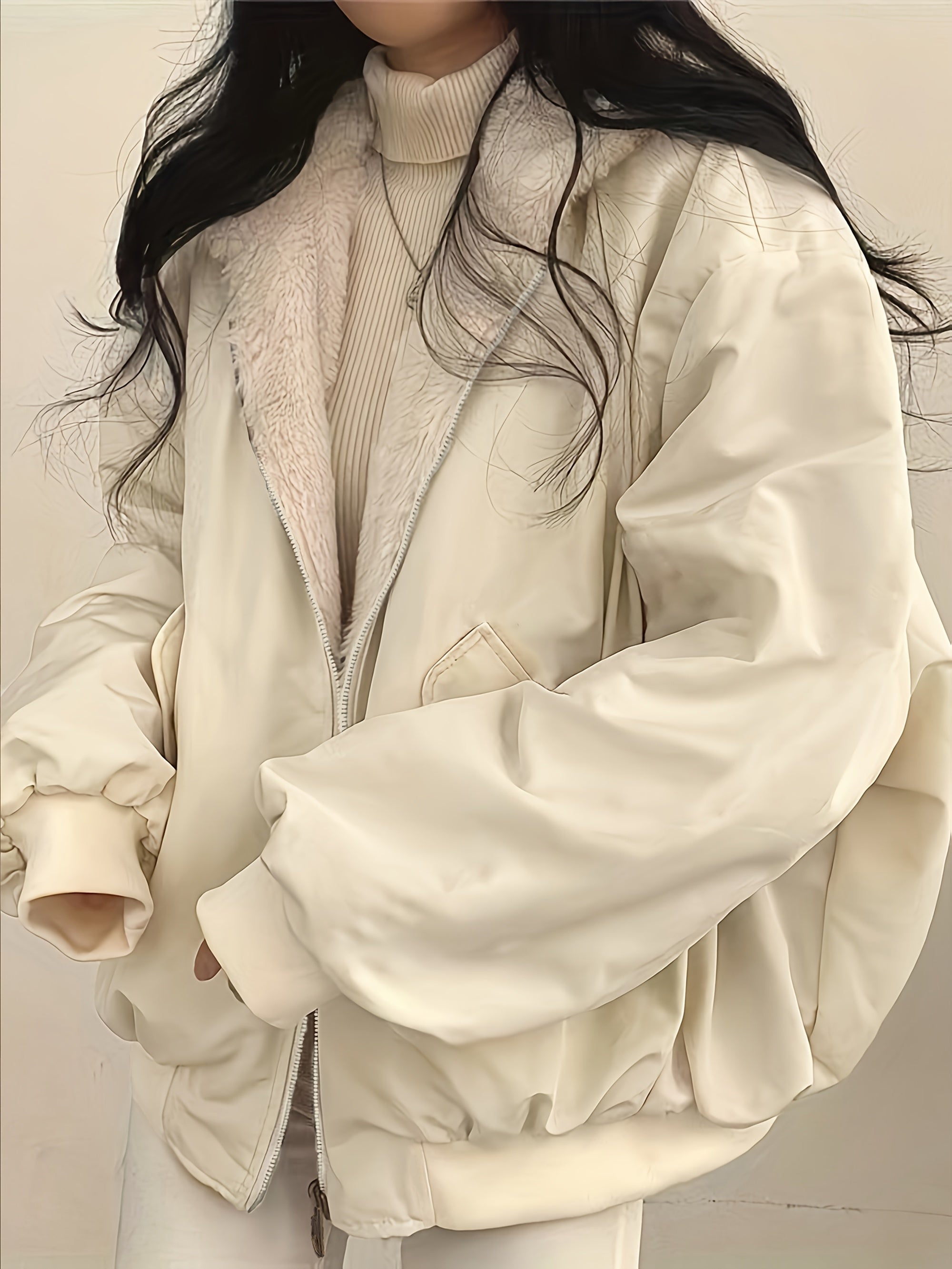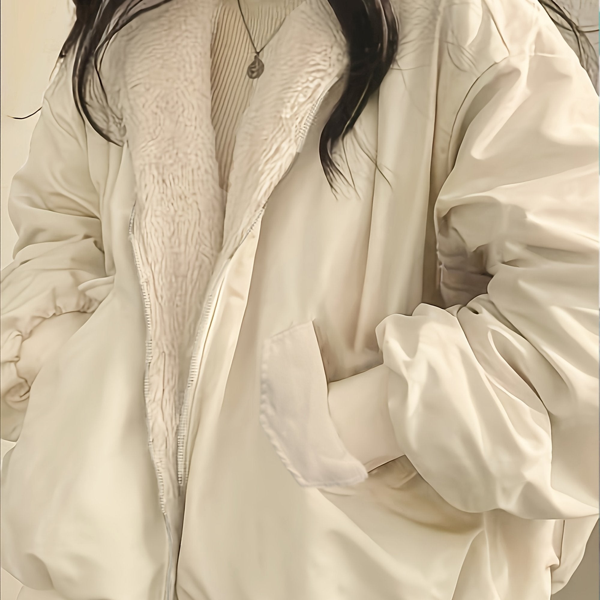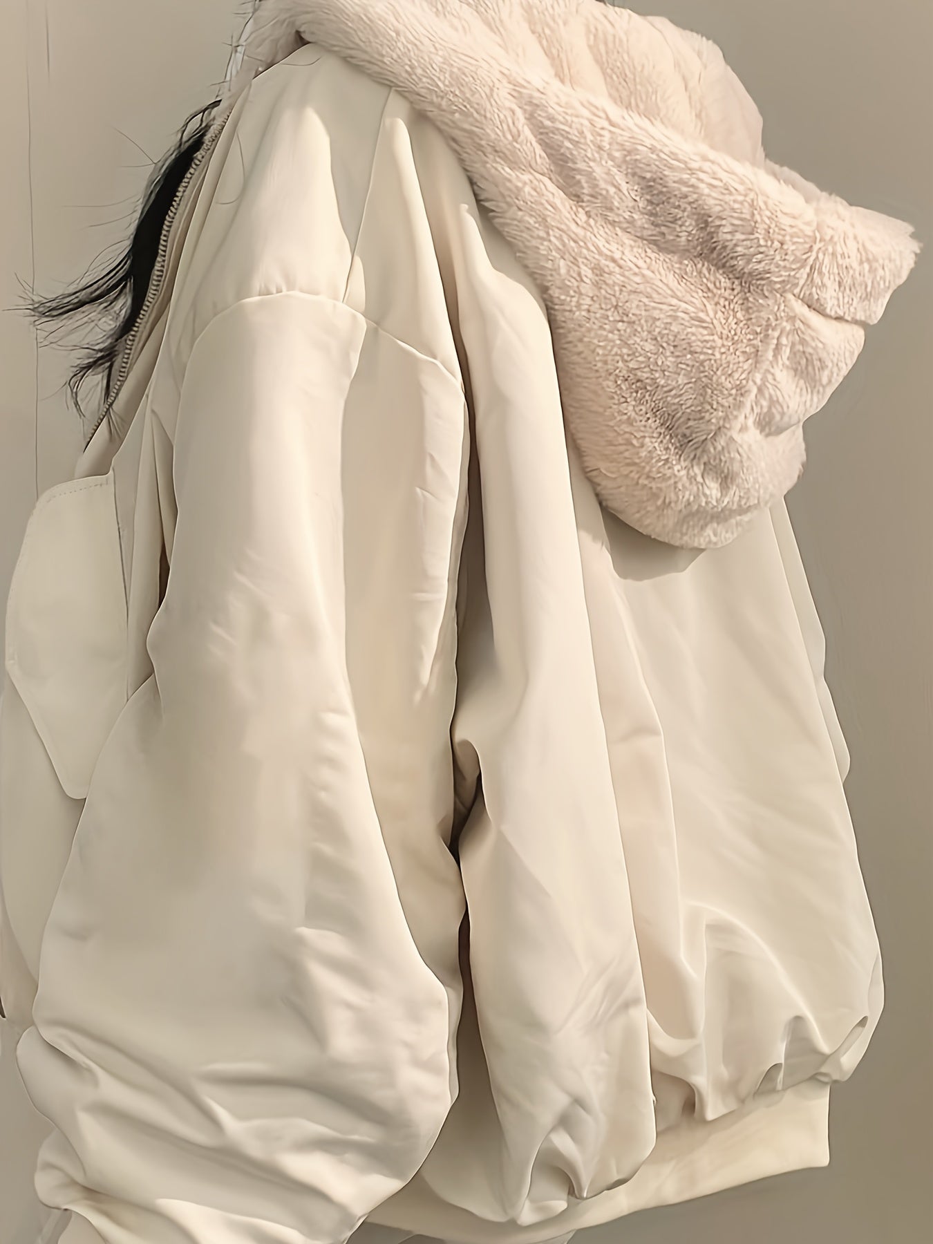 Women’s Hooded Coat – Reversible Design, Zip Front, Oversized Fit