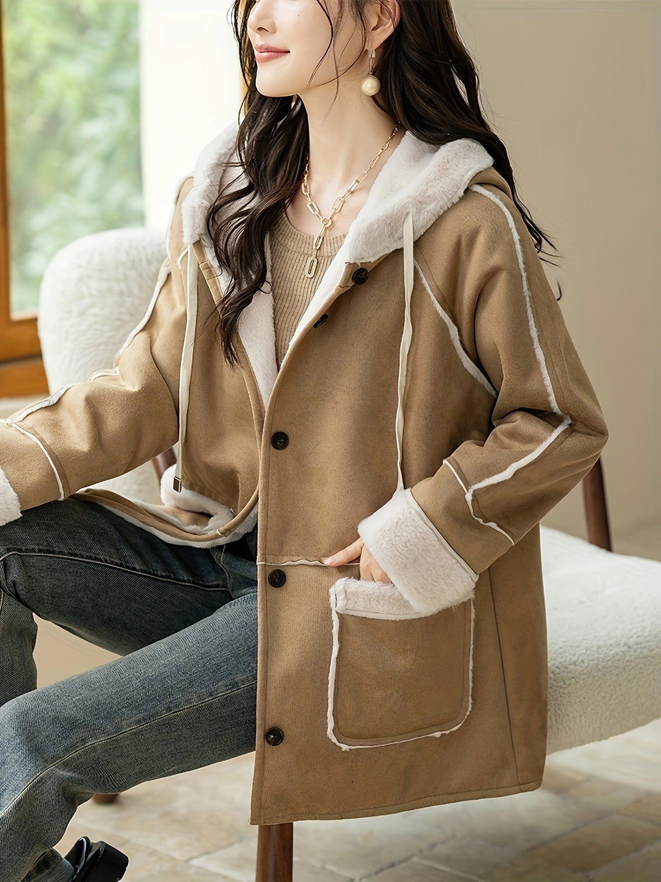 - Style Details: Zip-up front, hooded design, long sleeves, button placket