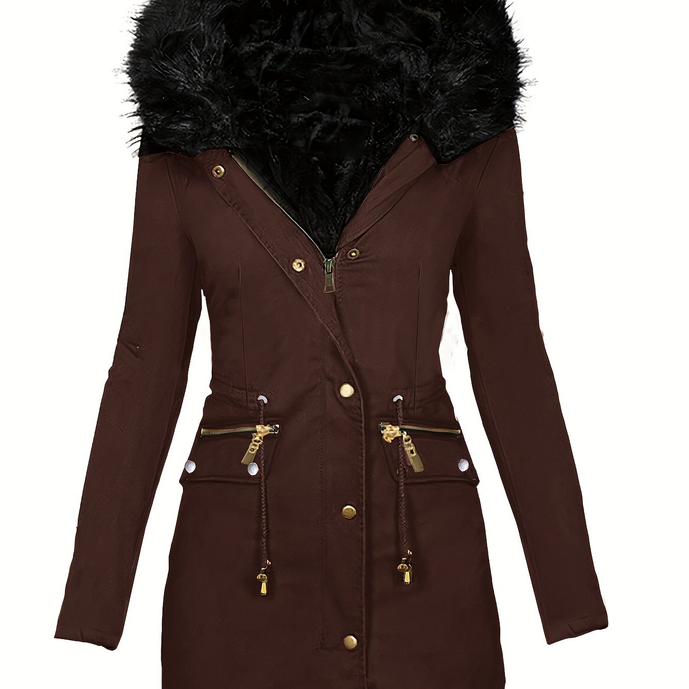 • Style Details: Long sleeves, button detail, side pockets, trench silhouette with faux fur collar