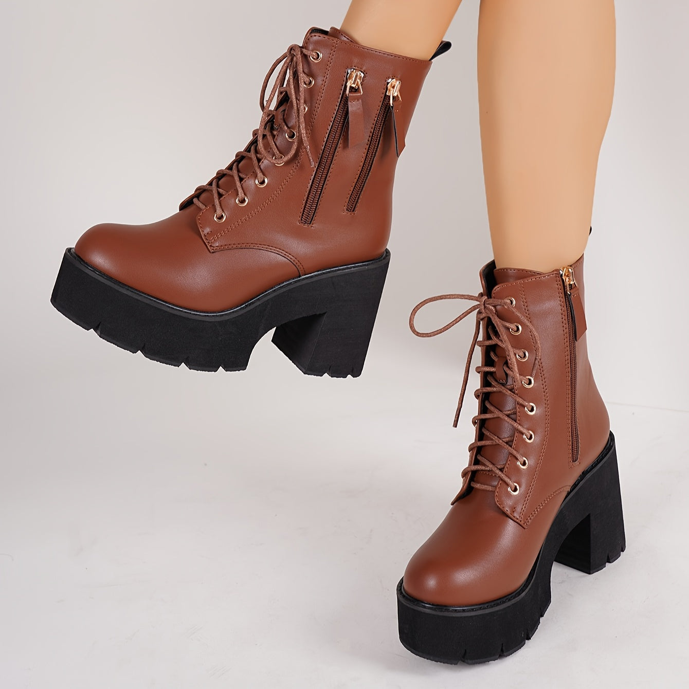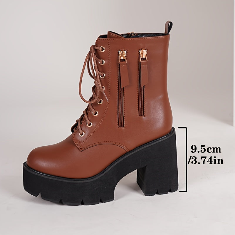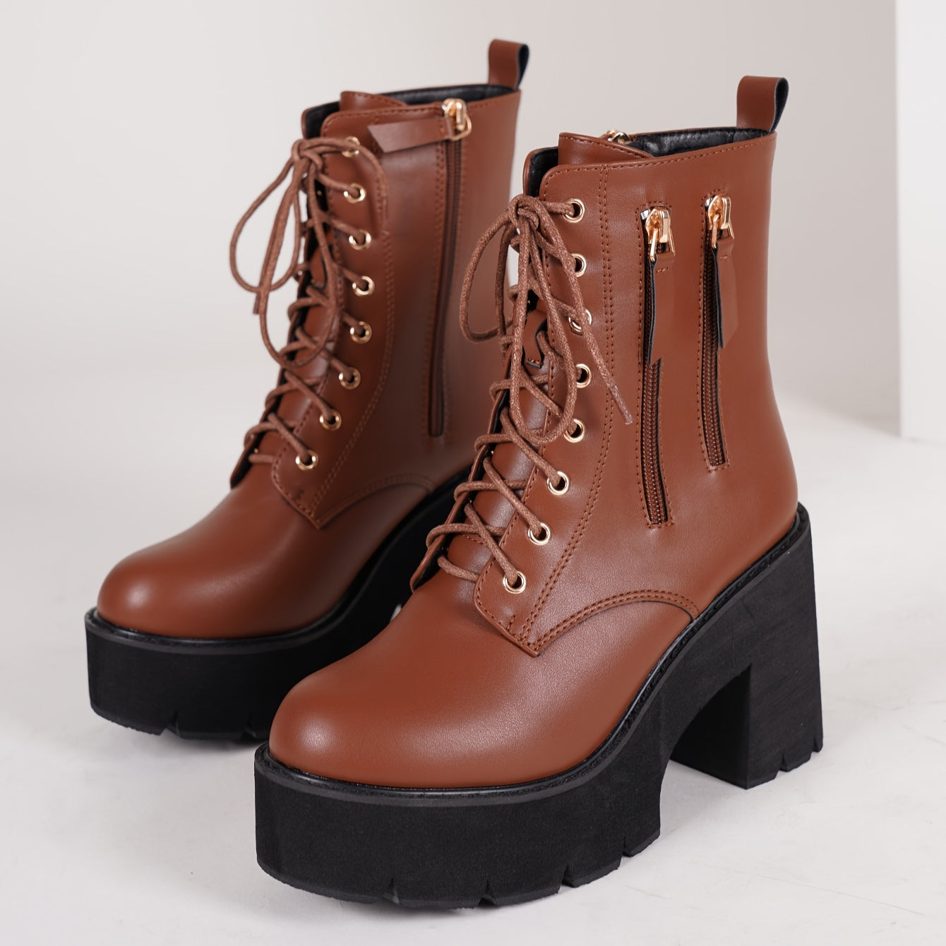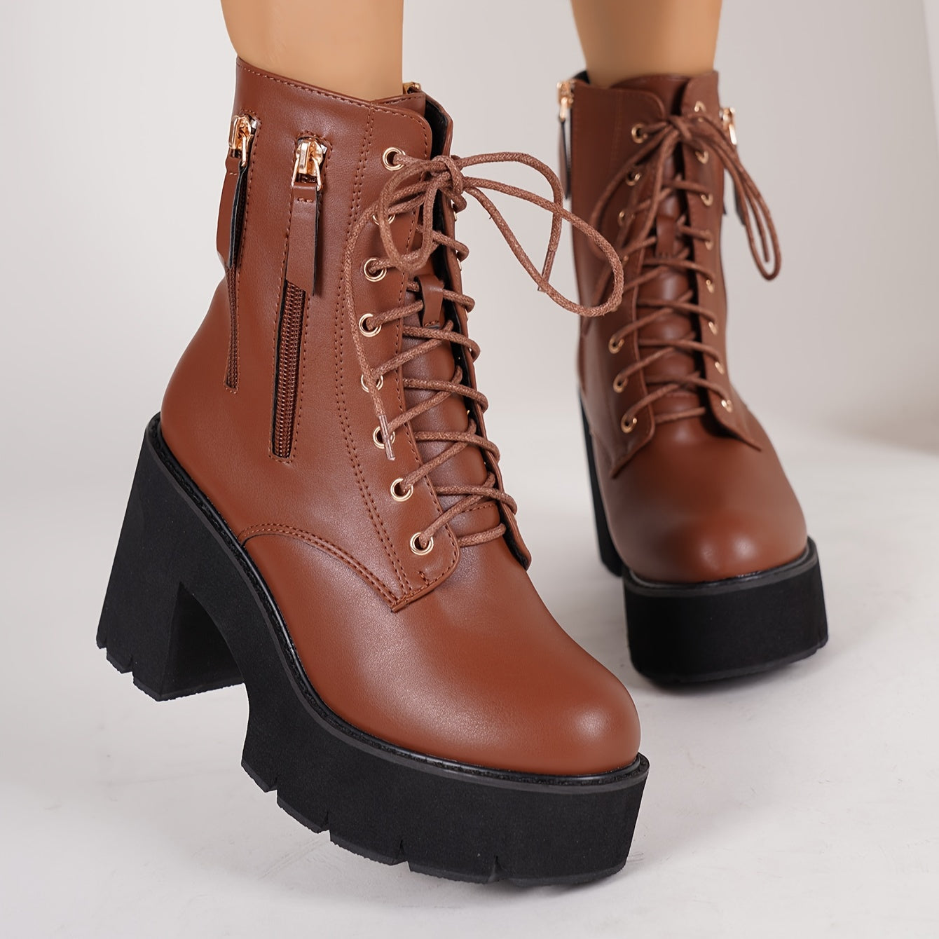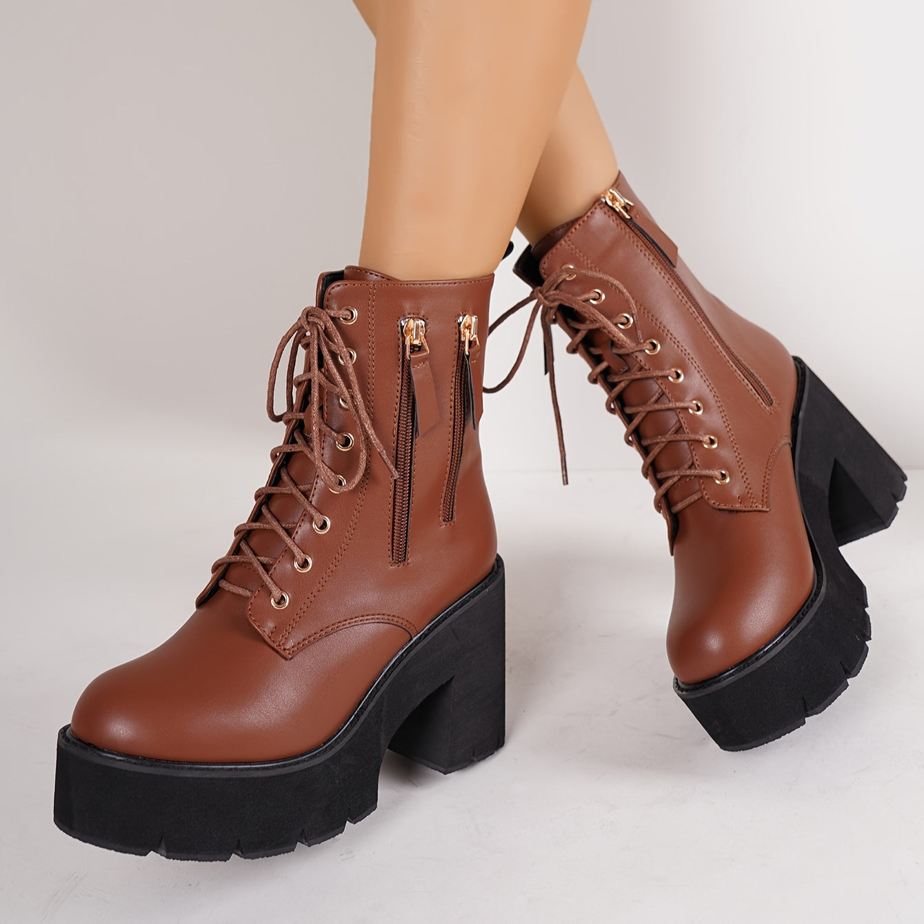 Women’s Ankle Boots – Round Toe, Chunky Heel, Side Zip, Vegan Upper
