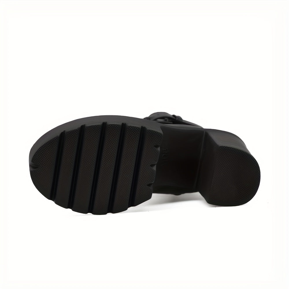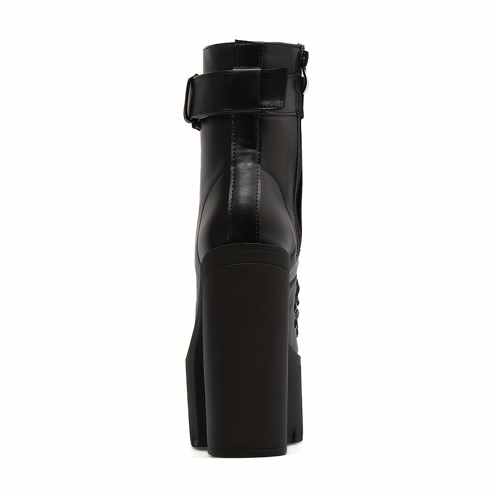 Women’s Platform Ankle Boots – Lace Up Front, Buckle Strap, Chunky Heel