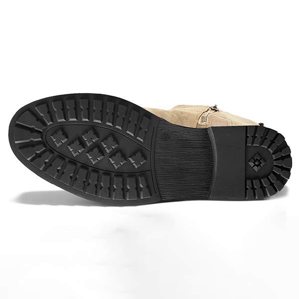 - Style Details: Mid-calf height, elastic side panels, pull-on entry