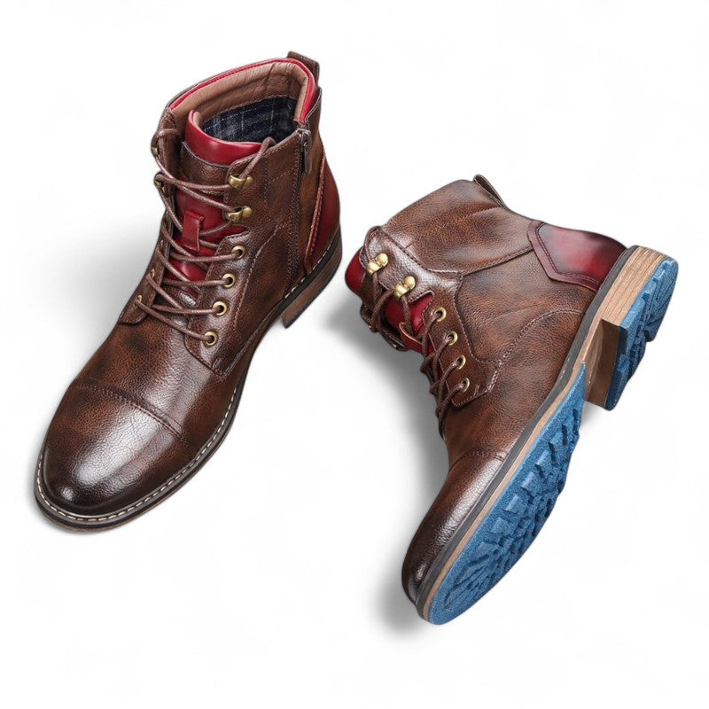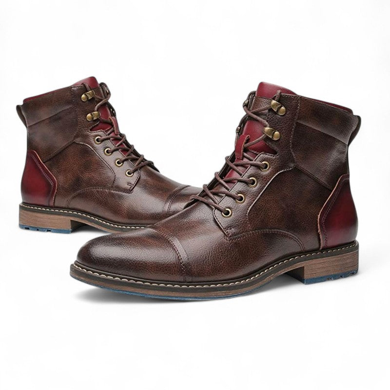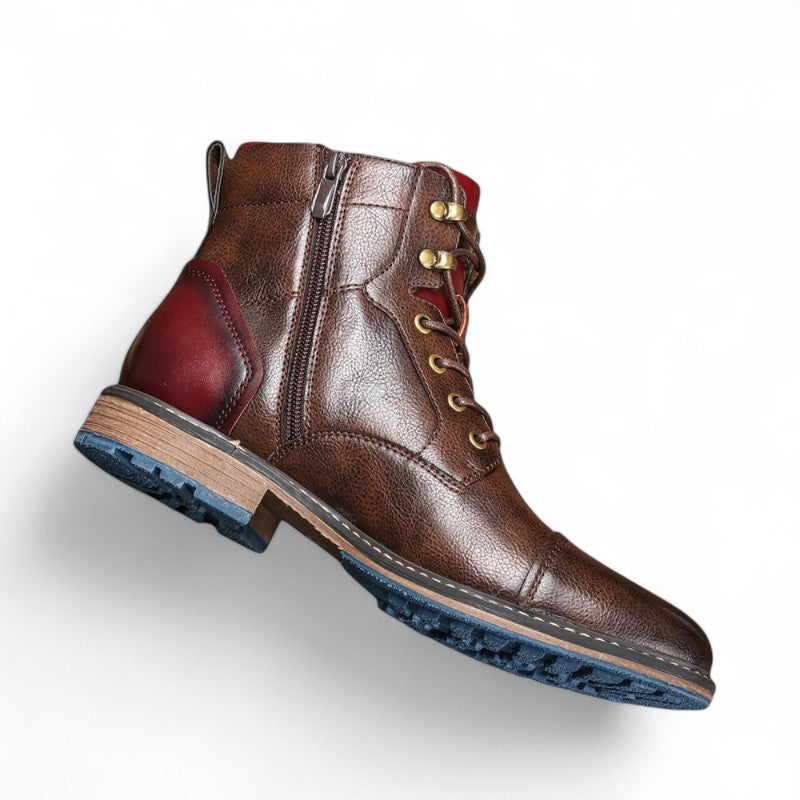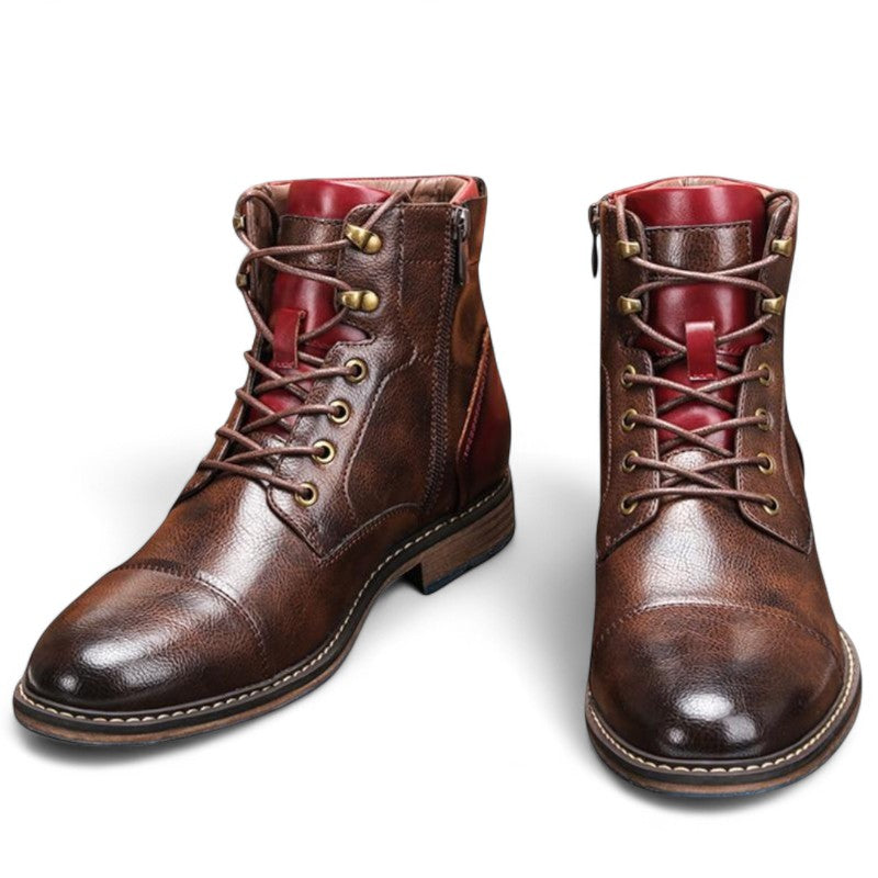 Men’s Lace Up Ankle Boots – Cap Toe Design, Metal Eyelets, Sturdy Sole