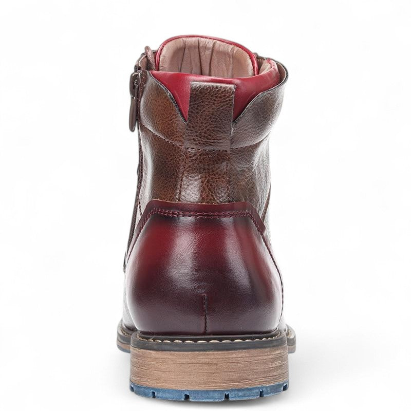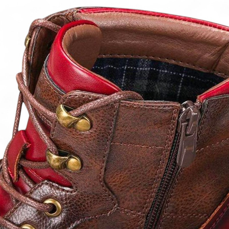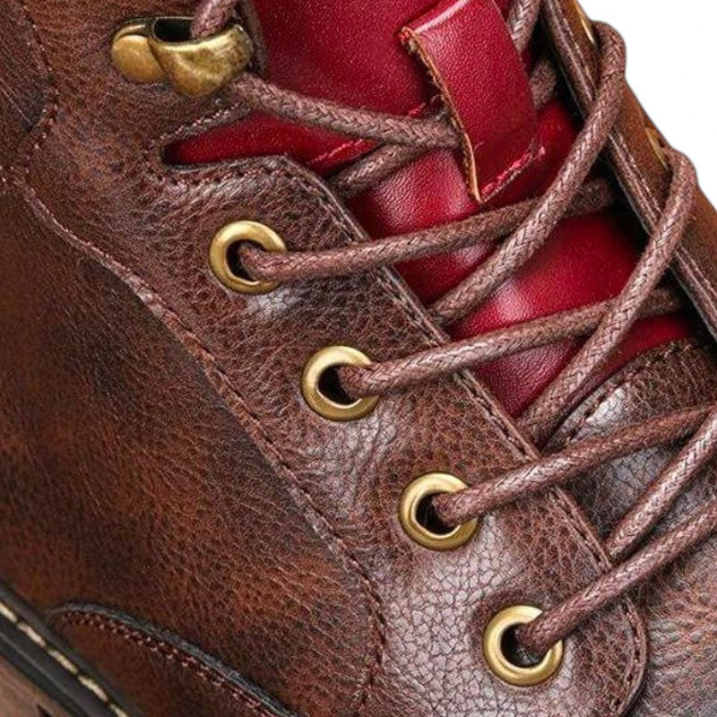 - Style: Lace-up ankle boots with cap toe