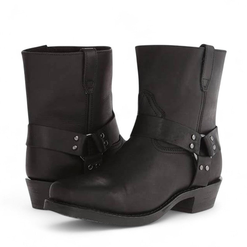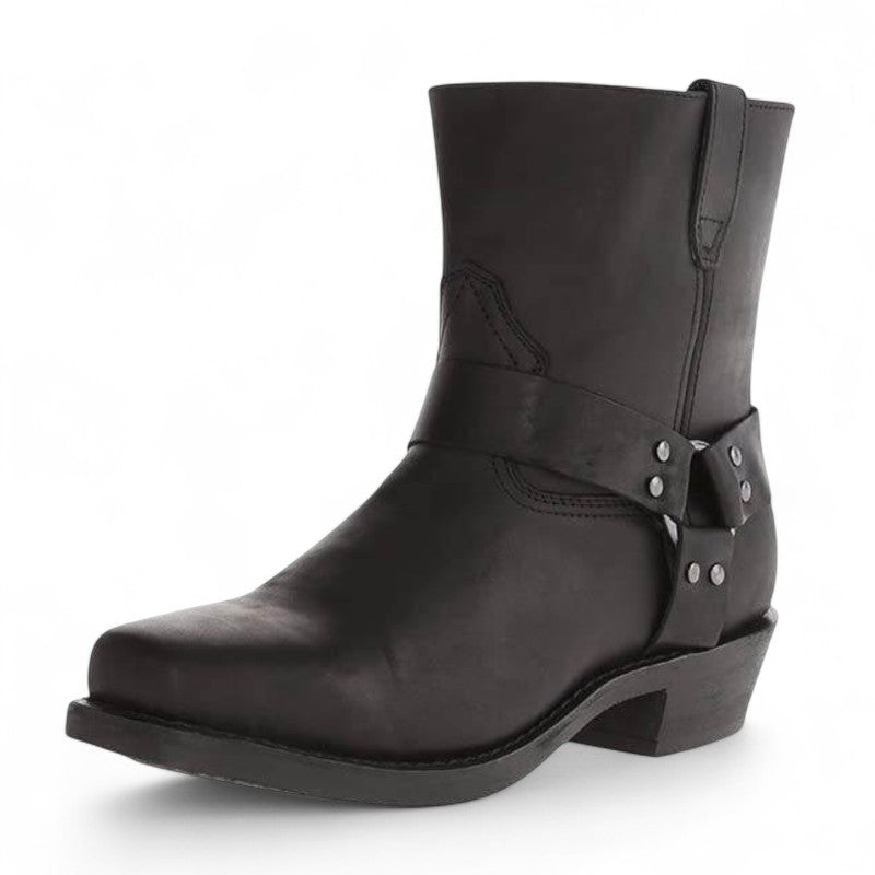 Men’s Leather Ankle Boots – Stand Collar Design, Sturdy Sole, Lace Up Fastening