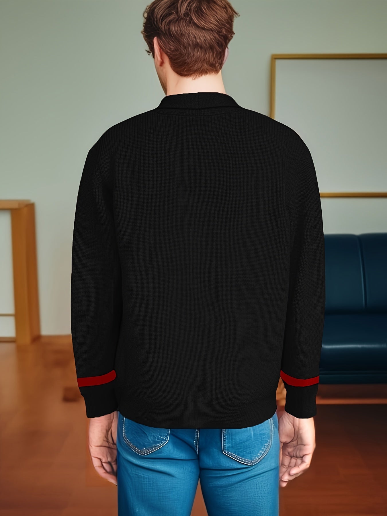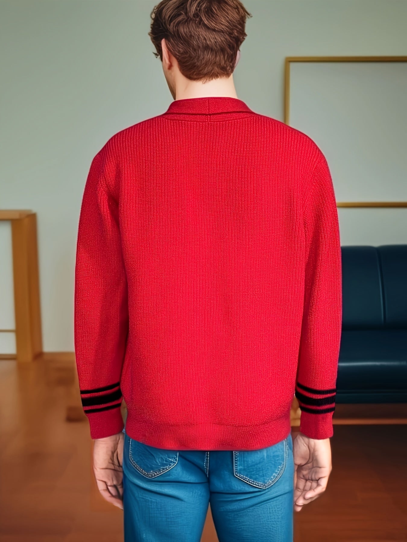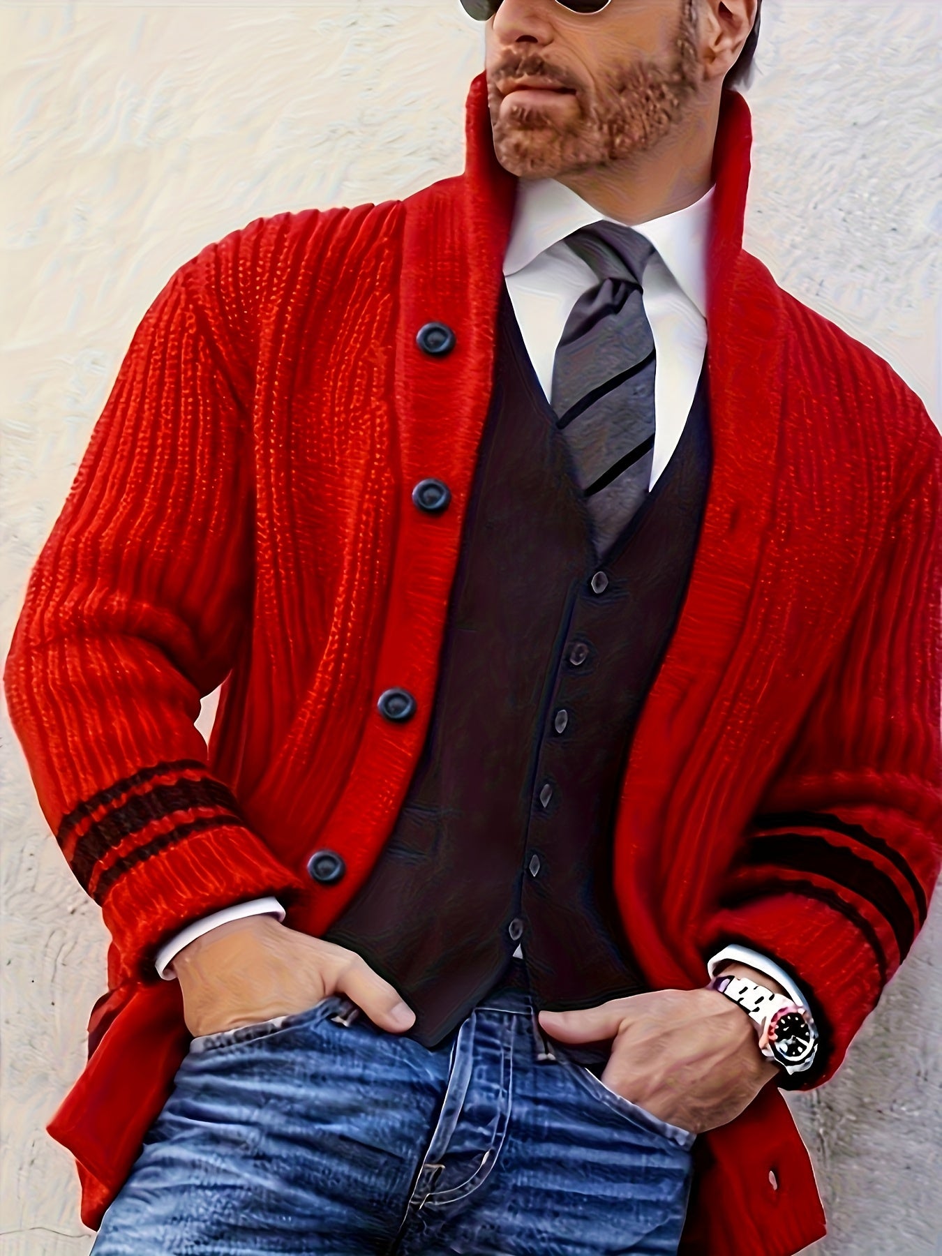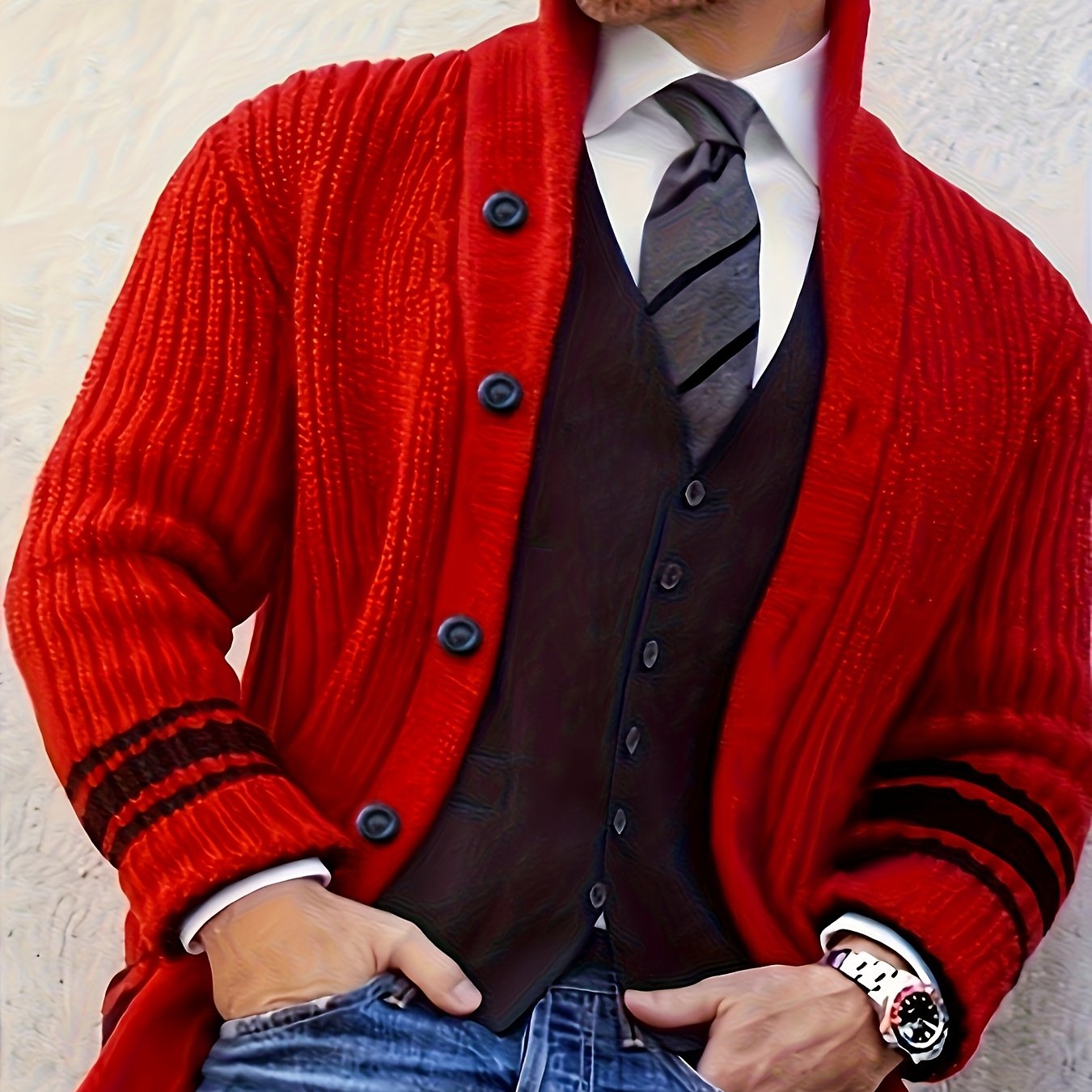 Men’s Long Knit Cardigan – Open Front, Stand Collar, Loose Fit