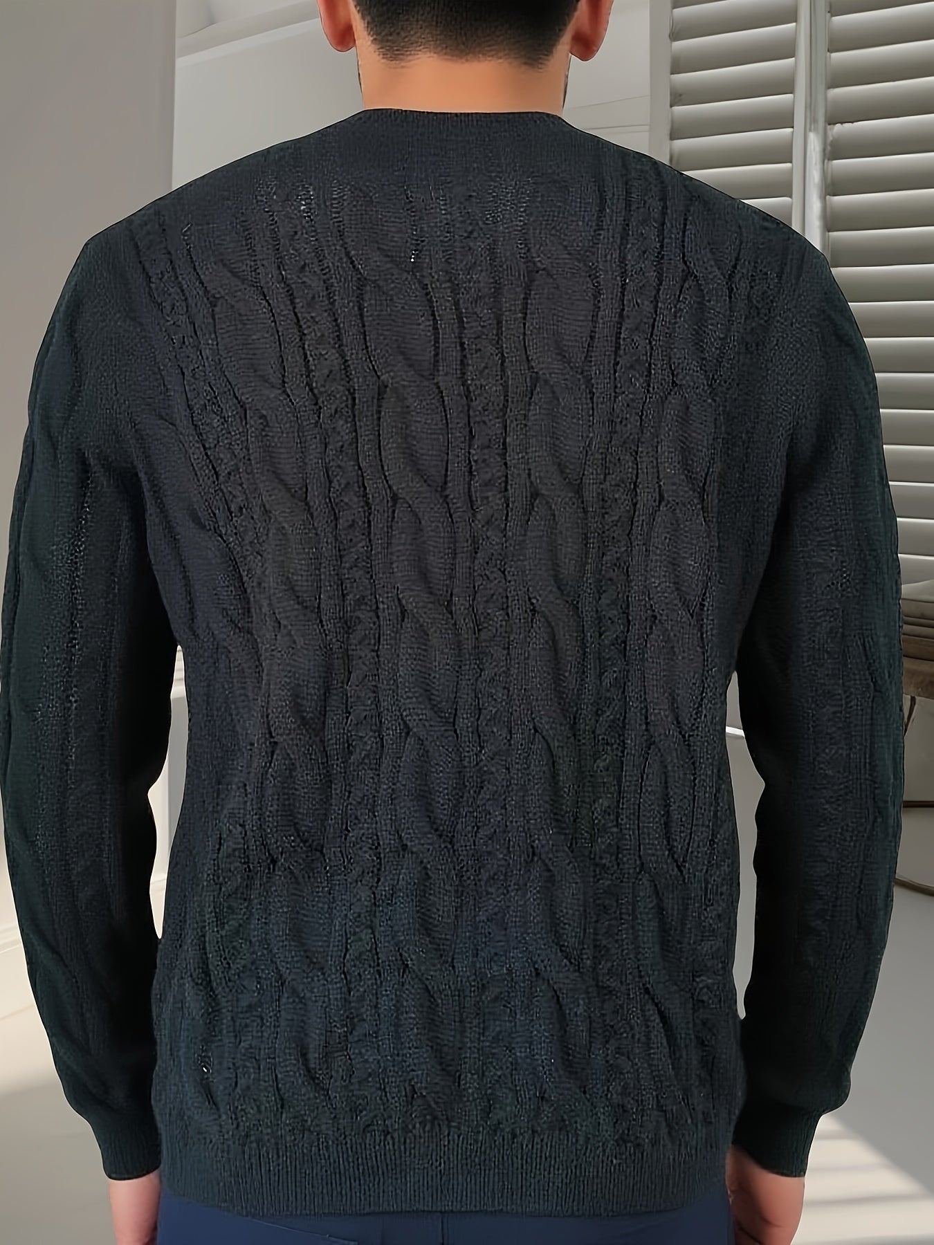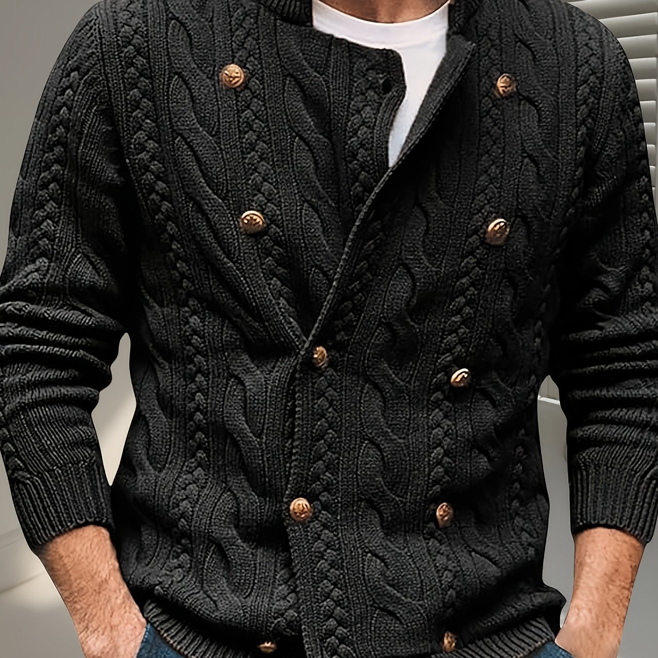 Men’s Plus Size Cable Knit Cardigan – Double Breasted, Textured Design, Casual Wear