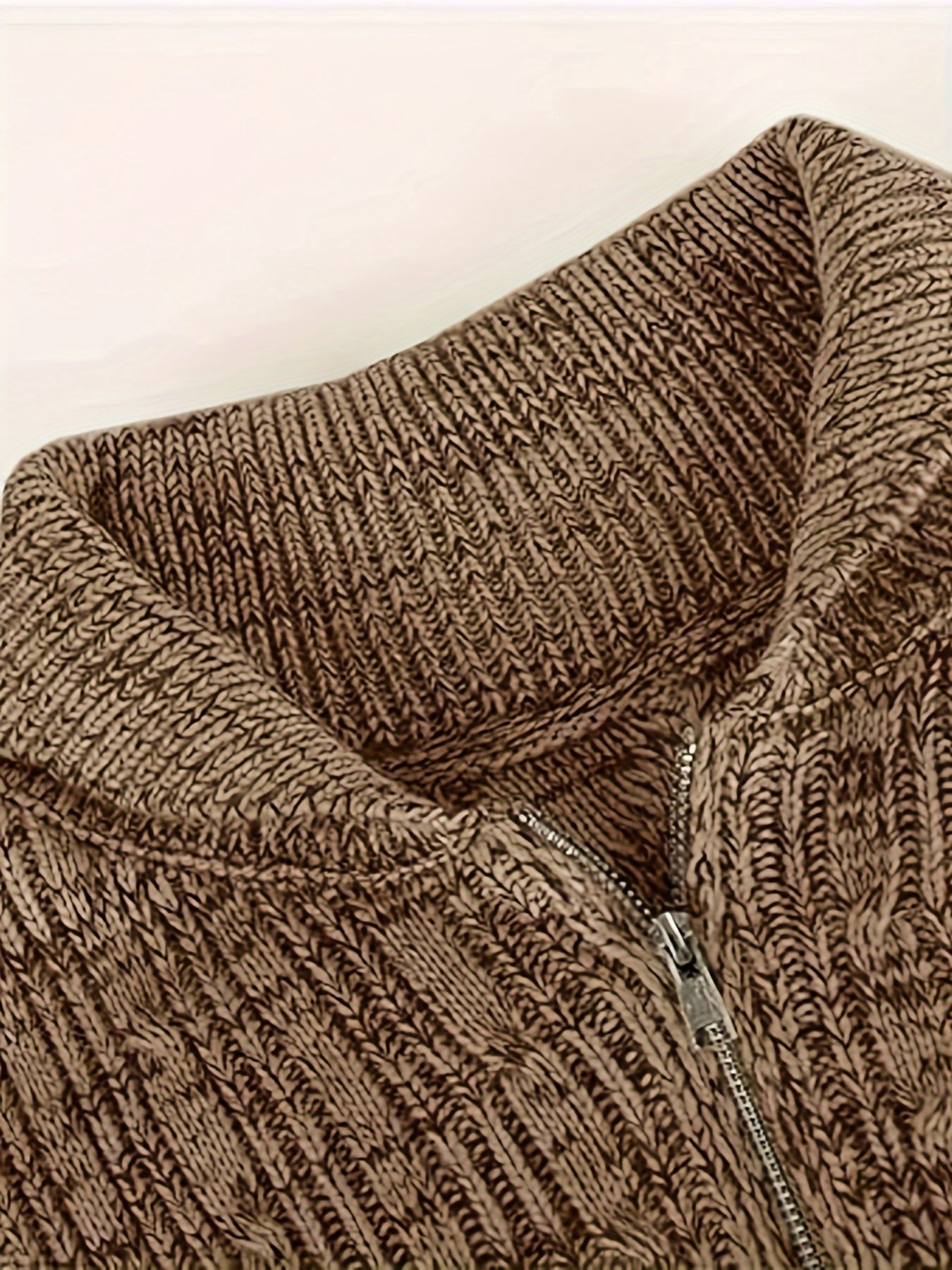 Men’s Thick Knit Sweater Jacket – Zip Front, Stand Collar, Plus Size Fit