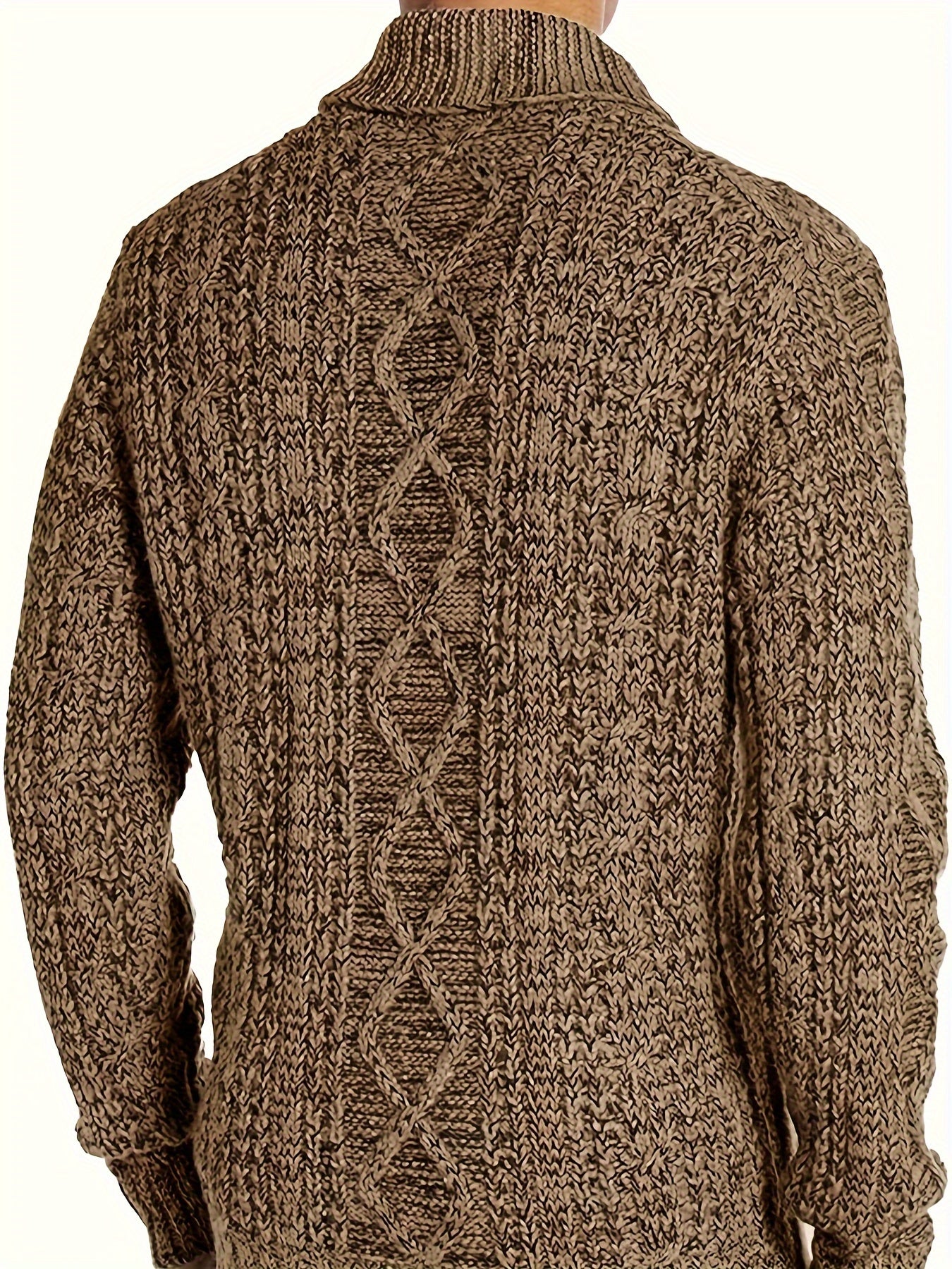 The Men’s Thick Knit Sweater Jacket offers practical warmth with a stand collar and full zip front. Designed for a comfortable plus-size fit, it functions as a layering piece suitable for cold-weather wear.